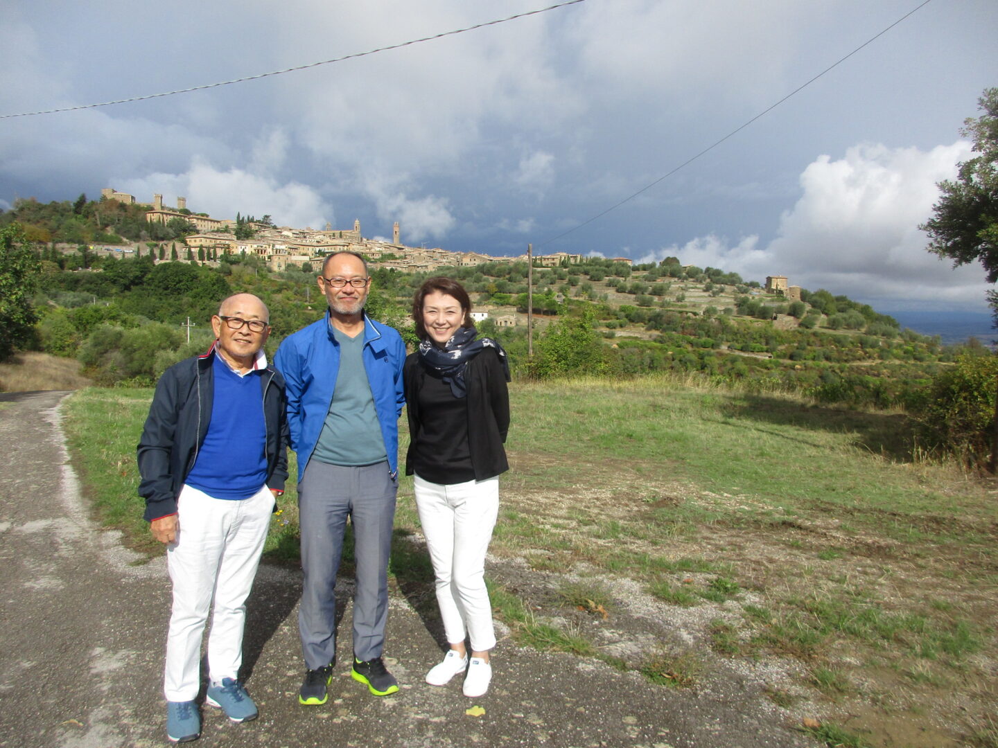 近くにモンタルチーノの町、遠くに果てしなく続くオルチャ渓谷・・・これはいつも行くたび、そして皆が言う事ですが、この絶景は写真では伝えられません 。