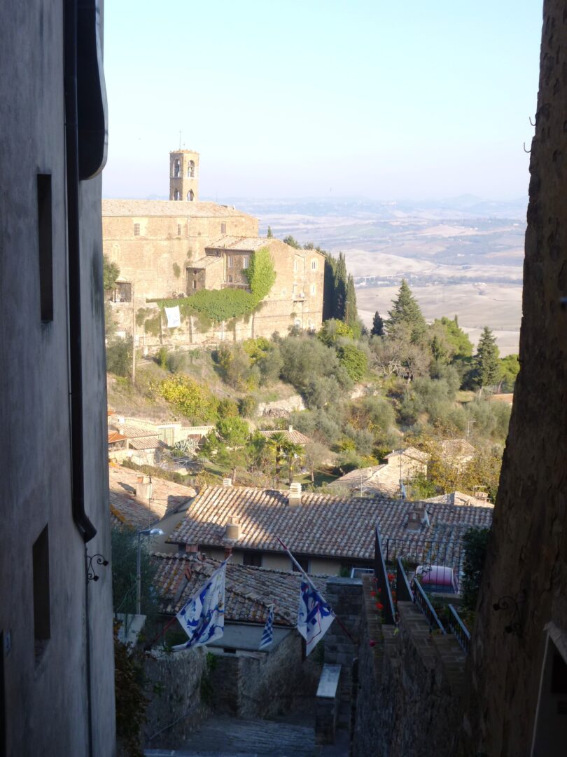 要塞の他にも、細長い市庁舎やエノテカなど旧市街も見所がありますが、オルチャ渓谷の5つの市の中で一番大きい旧市街で、そしてアップダウンもかなりあるので、歩きやすい靴と夏なら水をお忘れなく!