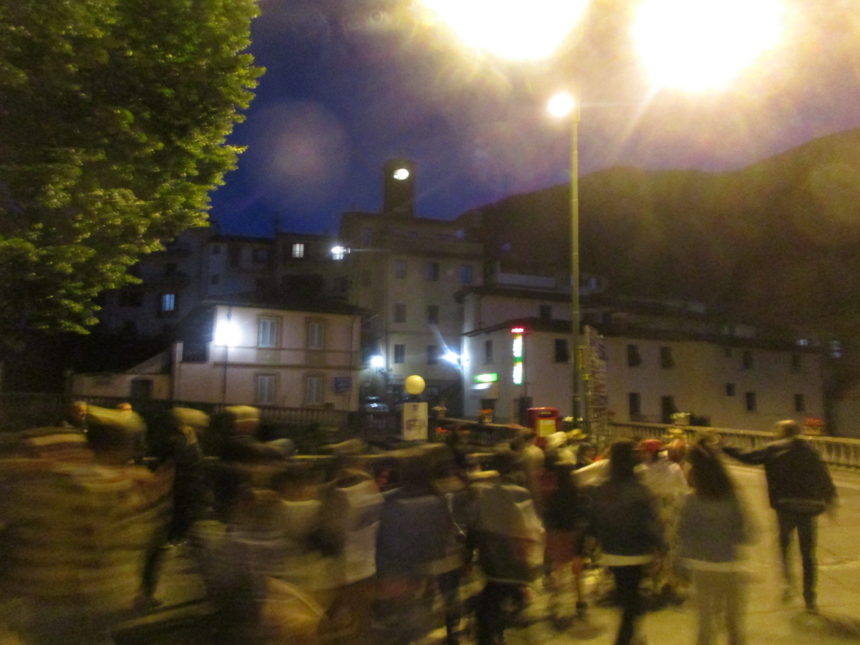 実は、今回は村に残るお年寄りのおうちの下で合唱!曲目は、お年寄りも歌える?トスカーナ民謡ヒットパレード!お年寄りいっぱいいるので、具体的にはどうやって決めたのかは分かりませんが(笑)全部で4カ所周りました。これは2カ所目、絵付け教室のイラーリアのマンマですが、彼女はまだまだ若くて70才くらいかな?大喜びでバラの花びらを巻いてくれ、大盛り上がり!!