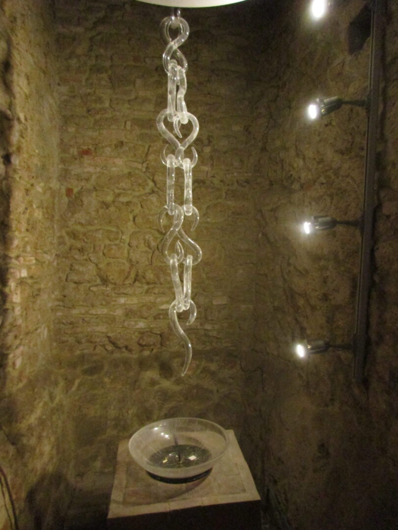更にお時間のある方、ガラス工芸に興味ある方は、新市街にあるクリスタル博物館(火~日・10時~18時、月曜休館。2020年2月現在は改築中で、旧市街のVia del Castello 33にて展示中、入場無料)へ。このコッレ・ヴァル・デルザは、イタリア有数のクリスタルの生産地でもあるのです。エレベーターへ行く地下道や、広場などにも、クリスタルのオブジェクトが飾られています。