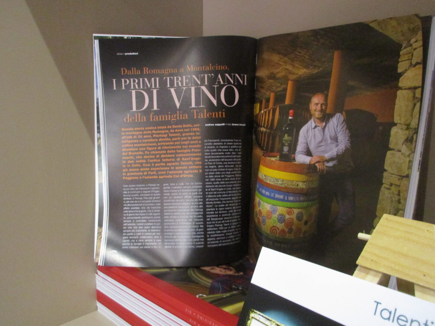 ヴェロネッリ社 出版のワイン農家の物語シリーズのうち、モンタルチーノは2人選出されているのですが、1人はモンタルチーノの歴史あるワイナリー、そしてピエルルイージさんは、タイトル “L’altro Brunello(もう1つのブルネッロ)” の通り、モンタルチーノに移住してきて、伝統にとらわれずに ブルネッロを近代化・再生させた主役 の1人で、当時廃頽していた農業をも活性化させた人物だそうです。