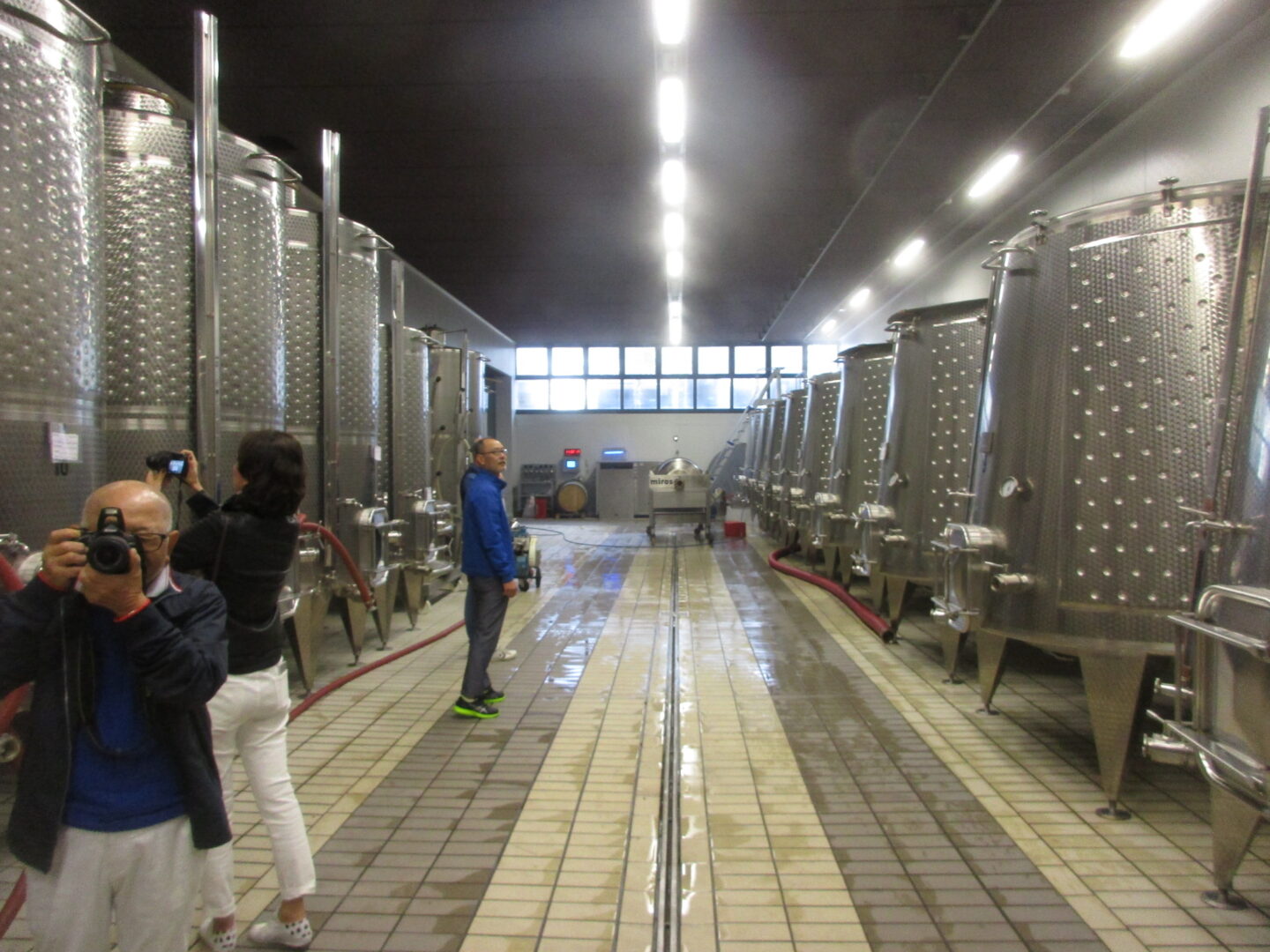 そして次は、 発酵タンク のある施設へ。発酵タンクも地方やワイナリーによっていろいろで、外にタンクがあるカンティーナもあれば、セラミックのタンクのところもあり。こちらは建物の地下で、各タンクの温度も管理できるようになっています。