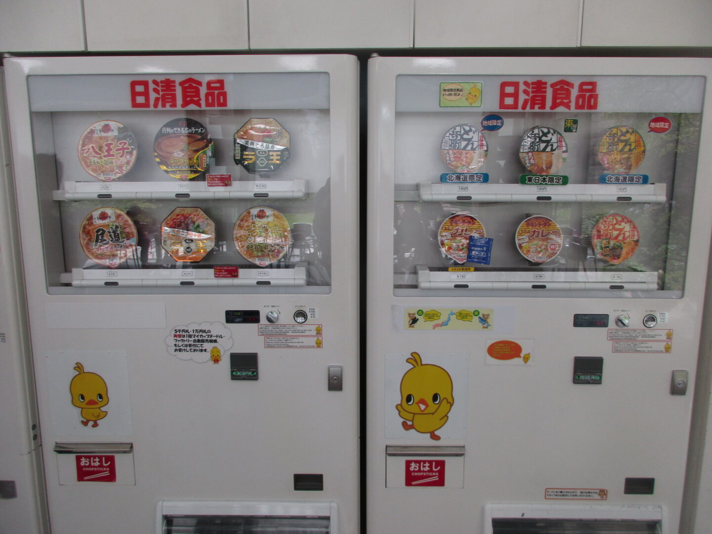 それから粉末スープと具を選びます。一番人気は、はやりキャラクターのひよこちゃんナルト。私はシーフードスープにエビ、ネギ、キムチ、ひよこちゃんナルト。次男は何を選んでいいのか分からず?ひよこちゃんナルトをWで(笑)。選ぶスープや具も好みや性格が出て面白い!