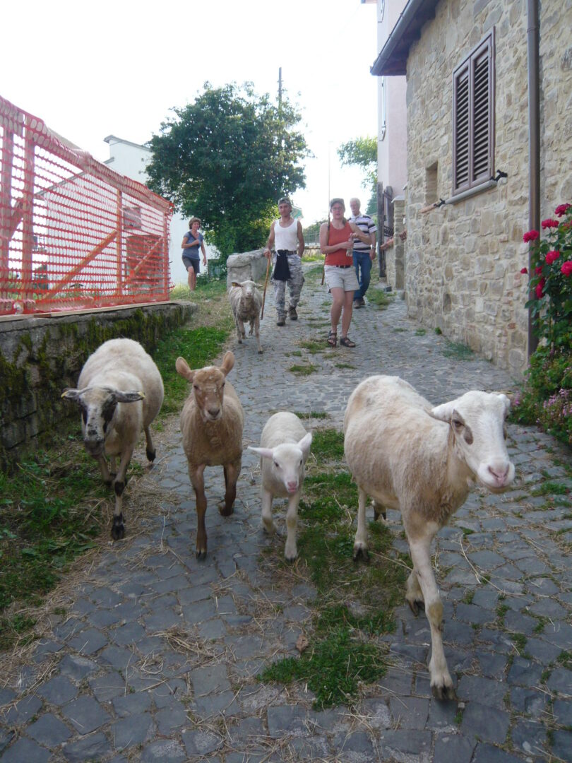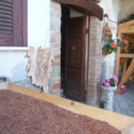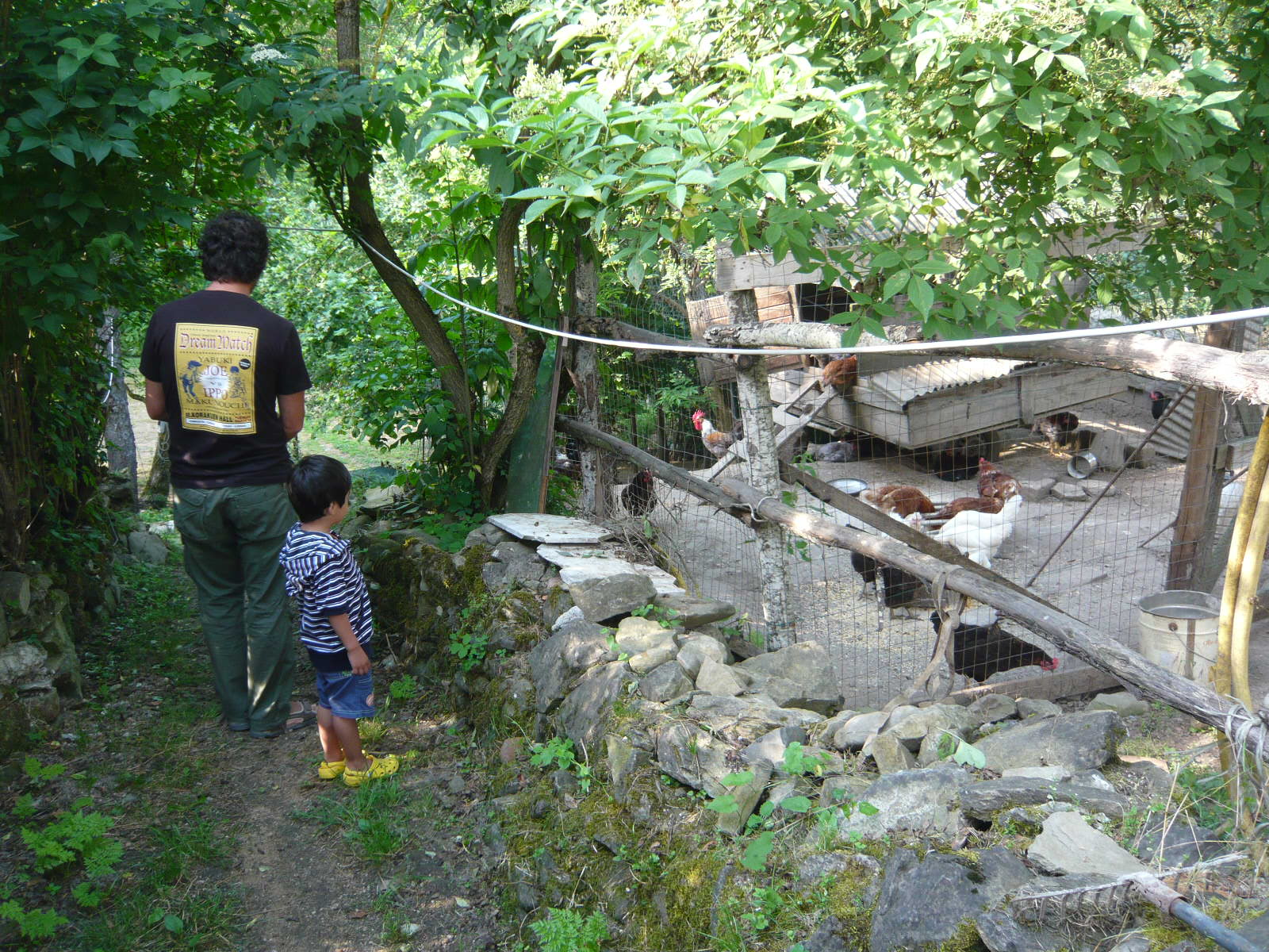 La Canestraはアブルッツォ州のラクイラ県・Aglioni という集落の中でした。当時カーナビもスマホ(グーグルマップ)もない中、道すがら人に聞いてたどり着いた記憶があります。この1年半前に発生した大地震で被害を受けた集落で、一部の住宅とアグリツーリズモの一部の施設も閉鎖していましたが、修復をした家屋にレセプション兼食堂、客室、オーナー家族の家、スタッフの家、親戚?の家、小さな教会などが点在していました。その周りには彼らの菜園や家畜のスぺースもあり、自由に見学したり、犬やヤギも普通に歩いてたり、とにかくその空間全てが面白い。サイトで検索して偶然見つけたのですが、私たちのような小さい子供連れにはまさにピッタリの!アグリツーリズモだったのです。