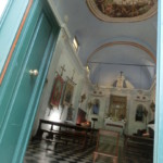 教会内部はパステル調でとっても爽やか!ブルーが海近くの教会を感じさせます。教会横の階段を上ると、何故か?バレーボールコートのある広場に出るのですが、ここから海と、隣の村・マナローラを見ることができます。