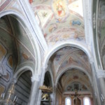 コルニリアに着いたら、バス停でまず帰りのバスをチェック。そして、その広場のバスが着いた方向から右にある、住宅の多い地区へ行ってみましょう。ここにあるのが、サンピエトロ教会。外側は地味ですが、中はパステル調のフレスコ画が美しい教会です。