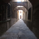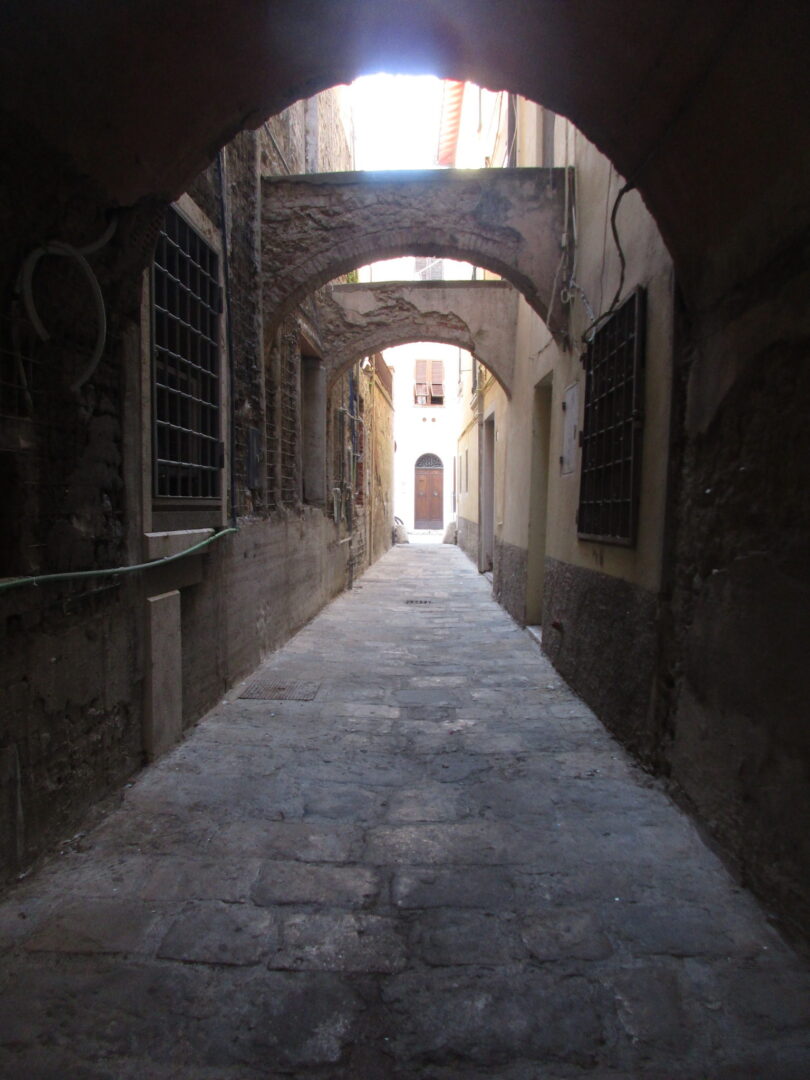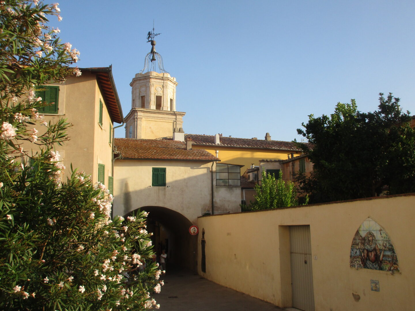 城壁の門をくぐると大きな広場に出て、最寄り駅とモンテ・アルジェンタリオをつなぐバスのバス停もあります。これ以降、旧市街の中にはバスは通らず迂回するので、オルベテッロの旧市街を散策される方はここか、次のバス停(旧市街のここと反対側)で下車しましょう。この広場からは向こうは路地が多く、小さな村好きの方がワクワクするシーンにたくさん出会えます。