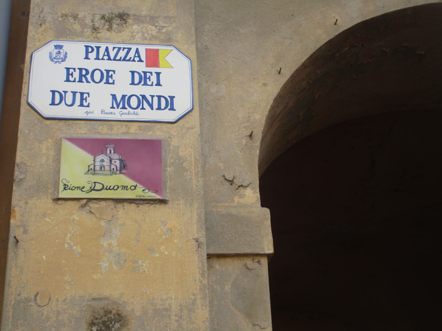 オルベテッロにズームすると分かって頂けると思うのですが、運河によって、町は左右2つに区画されています。右側が最近のマンションやスーパーなどがある、いわゆる「新市街」。運河から少し行ったところにあるTOP写真の城塞門を抜けると左側・「旧市街」に入り、昔ながらの町並みに市役所や教会があります。