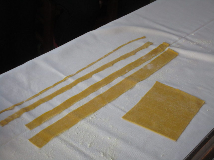 ここでは全てのパスタをまんべんなく紹介したので詳しく触れてませんでしたが、大きく分けてロングパスタ、ショートパスタ、詰め物パスタがあり、ロングパスタの中に「平麺」という分類があります。地域パスタを入れるとおそらくもーーーーーっとあるとは思います(郷土色豊か!イタリアのパスタマップ)が、主要なのはこの4つかと・・・TOP写真は、昨年、風車のアグリツーリズモでの料理教室でシェフが説明してくれたもの。一番右はロングパスタではないですが、平たいってことでラザニア、それから左に、細くなる順に