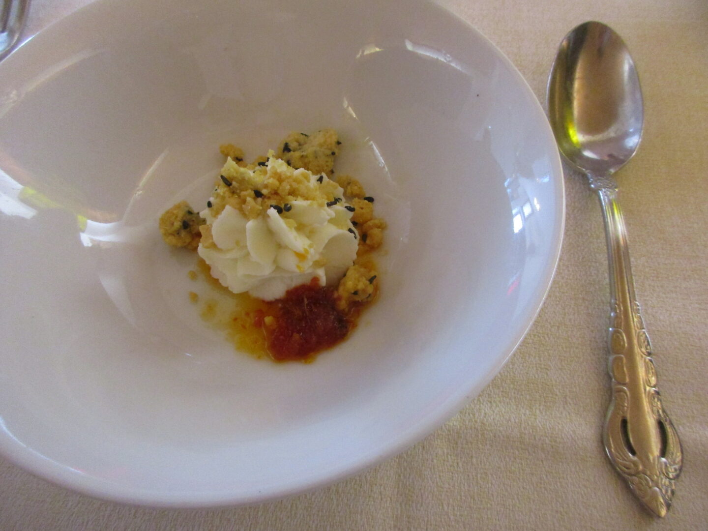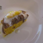 何なんですか、このトリュフは!量が多いと言うよりも、スライス一枚の面積が広い=大きなトリュフ!!大きすぎてトリュフと分からないくらい!!それがもうてんこ盛りなので、運ばれてくるときから香りが・・・そしてトリュフだだけでなく、固すぎず、抜群の食感のタリオリーニ、そして超まろやかなバターソース!あとでシェフに聞いたら、バターだけで一切チーズなどは入ってないとか。さすが名門店・名シェフだな、と納得したのですが・・・