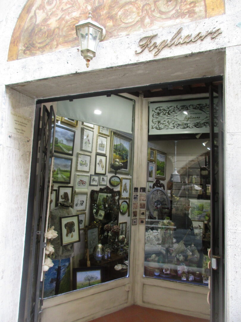 小さな村あるある、が、こんな小さな村なのに!と思わず思ってしまうような、オシャレな服屋さんや雑貨屋さんがあること。これはリベルタ通りのある雑貨屋さんですが、この通りや、もう1つの目抜き通り=ガリバルディ広場から北東に伸びる坂道・モンチーニ通りにも、覗くだけでも楽しいお店やバールがたくさんあります。