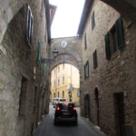 マッサ・マリッティマの旧市街北側には、今でも中世の城壁がしっかりと残っているのです。しかもこんなに高く立派な城壁が・・・元々マッサ・マリッティマの城壁が建設されたの11世紀からですが、現在残っているのは一度シエナに一部を損壊され、再建設された13世紀以降の城壁です。その後、マッサ・マリッティマはシエナの統治下に置かれたため、今も門の上には白黒のシエナ共和国の紋章が掲げられています。とはいえ、他のトスカーナの町と同様に16世紀にはトスカーナ公国に併合されるので、旧市街の中にメディチ家の紋章を見ることもできます。そういった当地の歴史が見られるのも、面白いですね。