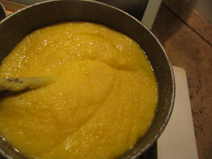 ポレンタは、トウモロコシの粉(そのままFarina di mais とも呼びます)。沸騰したお湯にこのトウモロコシの粉をダマにならないように少しづつ入れ、煮たもの。よく食べるのはロンバルディア州やヴェネト州など、北部が多いですが、イタリアの山間部では南部でも食べるようですね。もちろんトスカーナでも!各州によって食べ方もいろいろあるようですが、トスカーナではおおよそこの2つの食べ方になります。