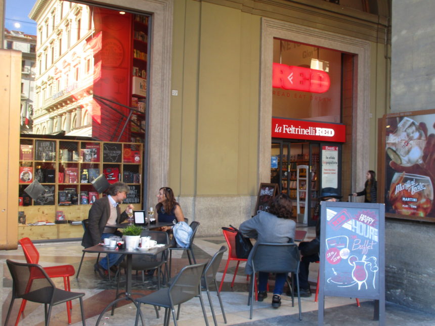 もう何年も前からカフェ併設の店舗が増えてきています。その草分け的存在だったのが、レプッブリカ広場にあった本屋・EDISON、今は同じ本屋でも大型チェーン店FeltrinelliグループのREDに変わりましたが、そのカフェも同じように継続・・・どころか、1階フロアの半分ほどがテーブル席となり、食事やアペリティーヴォもできるようにパワーアップ!