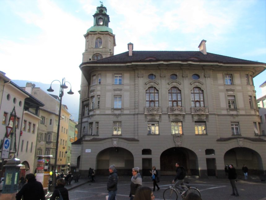 イタリア北部の州、トレンティーノ・アルトアディジェ州は、イタリアに5つある特別自治州。その中でも南側のトレンティーノ州とアルトアディジェ州に分かれており、後者のボルツァーノ自治県・県都がこのボルツァーノになります。この州は第一次世界大戦までオーストリア・ハンガリー帝国の一部であったため、町の雰囲気も建物の様式もイタリアっぽくない!そしてボルツァーノ県では、なんとドイツ語も公用語。書いてある標識やお店の名前まで、全部両言語の表記となっています。実際、イタリア人というよりも「南チロル人」という人も多いそう・・・そういえば、観光ポスターや地元商品なんかにもSUDTIROLと必ず入っていますね。