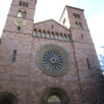 ファサードは大きなバラ窓がついているくらいで、意外と地味です。ドゥオモは1200年代から建設が始まったロマネスクーゴシック様式。鐘楼の完成は1500年代なので、他の大聖堂と同様、時間がかなりかかって完成されたものです。