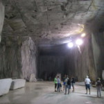 採石場は地上タイプと、このトンネルを掘った先にある内部タイプがあますが、このラヴァッチョ―ネ・トンネル84番は後者のタイプ。内部採掘のパイオニアでもあるデッラミーコ氏が1983年に採石を開始。大理石の美しさ、採石場の美しさを知ってもらおうと、2003年にツアーを開始したそうです。トンネル~内部に入ると、ご覧の通り、360度、全て大理石!ツアーで周る場所はほんの一部で、この内部の総空間はなんと2万4000立方メートルだとか。「大理石の大聖堂」と呼ばれるスペースは本当に、圧巻!の一言に尽きます。