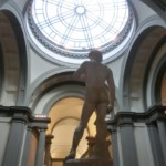廊下に入ると、奥のダヴィデ像がいっそう輝いて吸い込まれるような錯覚に落ち入ります。早く近くで見たい欲求を抑えつつ、ドキドキしながらゆっくりとアプローチのがたまりません。それは、初めて見た25年前も、何回も見た後今も同じ、なんだか初恋の人に再会するかのよう。