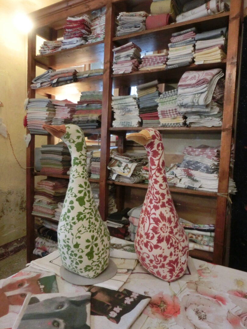 取り扱い製品のほとんどは、トスカーナを中心とした高品質な製品をつくっている小さなメーカーのものばかり。それでいて超高級でもないし、変わった柄や雰囲気のものも多く、見ているだけでもあっという間に時間が過ぎてしまいます。布や染色が好きな方にはたまらない1軒、ぜひ覗いてみて下さいね。
