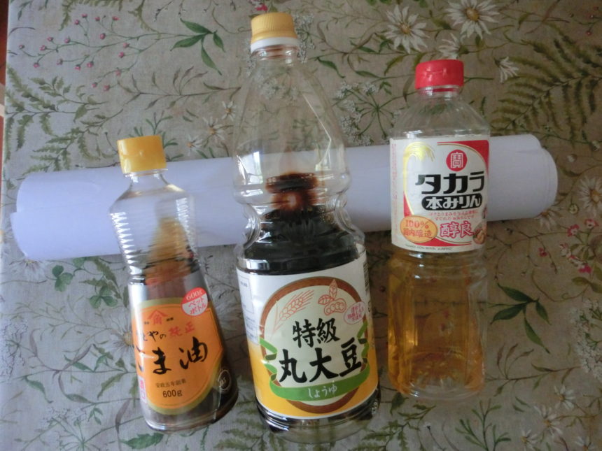それは手持ちの日本食が終わりそうな時。これも誕生日にだす料理と同じで、1年間に使う様々な日本食材の適量が分かるようになってきた&様子を見ながら使うので、日本帰省前は、1年前に持ってきたものがほぼ底をつきます。左から、ゴマ油、しょうゆ、みりん。うちは長男が中学生になって平日の昼に帰ってくるようになり、平日昼はいつも和食・・・なので、それからの食材の減り方が半端ない💦