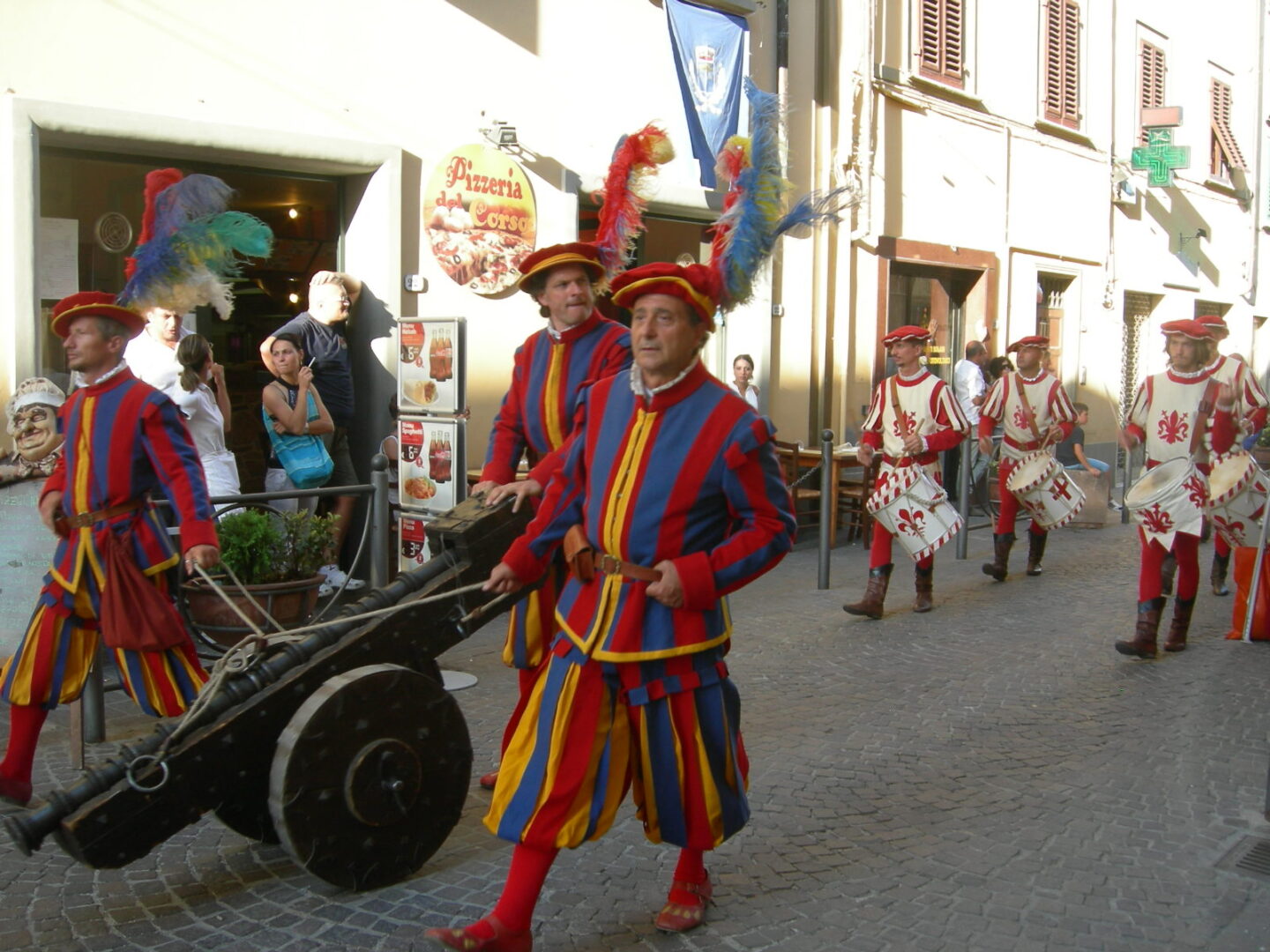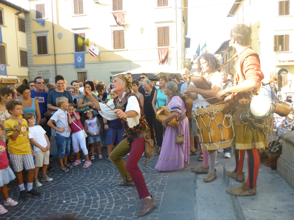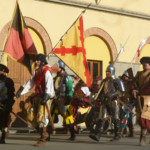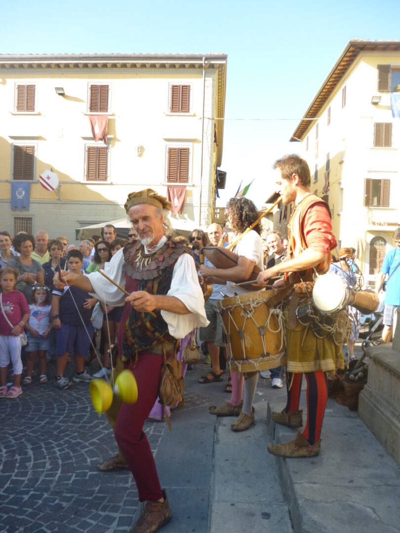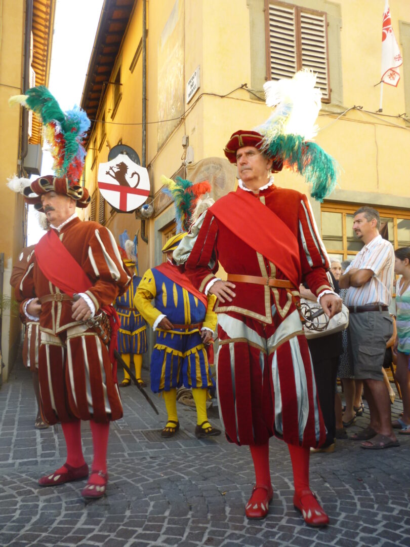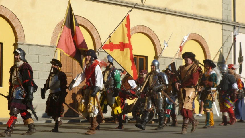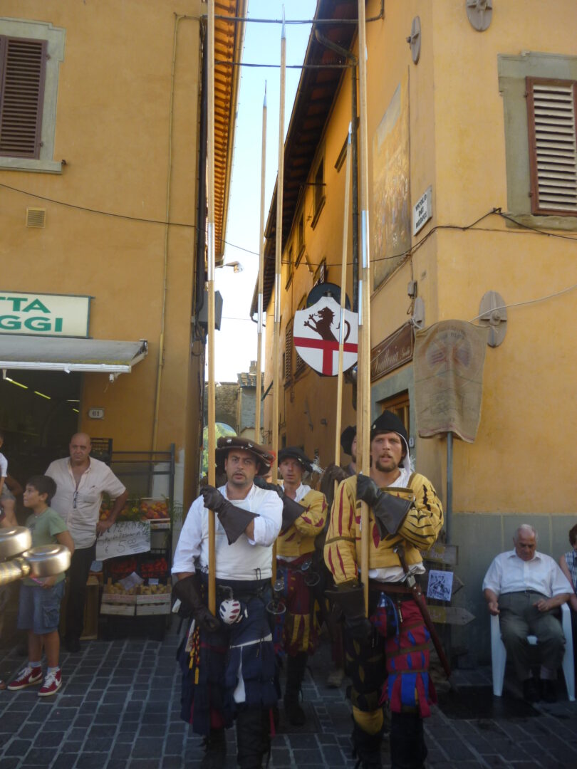 イタリアでは夏、モンテリッジョーニを始め小さな村を中心に中世祭りが行われます。こういったお祭りは行きにくい場所も多いのですが、ここヴィッキオはフィレンツェから直通電車で約1時間、簡単にアクセスができるのが嬉しいお祭り。イベントのサブタイトルは、 Rievocazione Storica=歴史の追憶 、そう 1529という数字は1529年 、この年にこの町で起こった事件に由来しています~1529年、フィレンツェ共和国の忠誠町だったヴィッキオは、攻めてきたスペイン王国軍を前に、数か月も城を守り抜いたとのこと。最後は、大軍のスペイン・砲兵隊の前にたった500名の火縄砲兵はなすすべもなかったようですが、 彼らの精神と強さは今もこの町の誇りとなっているようです。