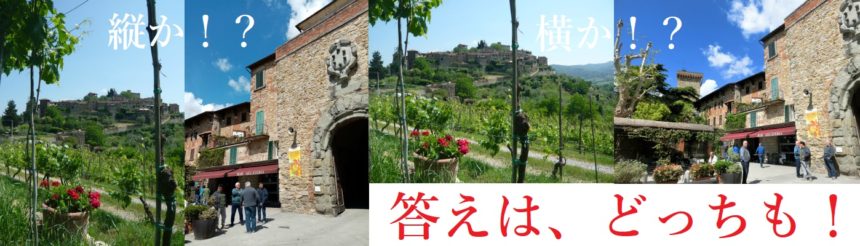 この4つの村の写真をどう入れるか。最初は4枚とも横写真をお渡ししていたのですが、4枚の写真の構図のバランスを見た配置、またトリミングしたら、見せたいところがイマイチ・・・など、デザイナーさんのひじきさんがいろいろ提案下さったのですが、なんかスッキリ収まらず・・・そこで、もしかしてルチニャーノとモンテフィオラッレは縦も撮ってたかも!?と探したら、ありました!ルチニャーノはカメラでなく、インスタ用にスマホでたまたま撮影していたんですが、これが助かった。ひじきさんに、「これって写真縦にしたらデザイン変わりますかね?」と写真を送ってみると、「これで完璧っす!!」と、今のドンピシャデザインが送られてきたのです。いやぁ、あれほどムズムズしていたこのページが一発解決!