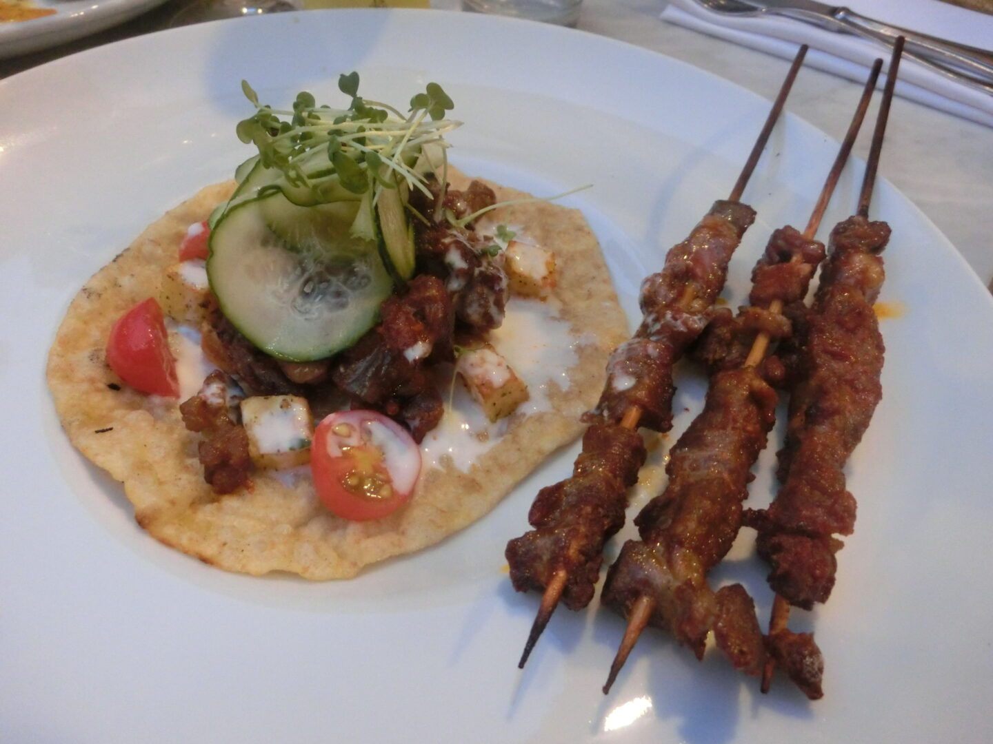 まずは前菜、マリネした牛肉に生エビ、と初めてのコンビネーション。エビも甘くて美味しかったですが 、牛肉のマリネが特に美味しかったです。