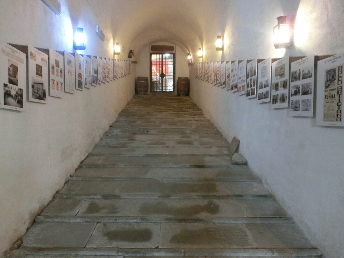 ワイン博物館は、元々ヴィッラの地下にあったセラーにあります。ヴィッラ正面・階段の間にあるエノテカからも入れますし、ヴィッラ向かって左側の小道を迂回すると、博物館のメイン玄関に出ます。入場は無料、カウンターでボランティアの方からパンフレットももらえます(イタリア語・英語)。