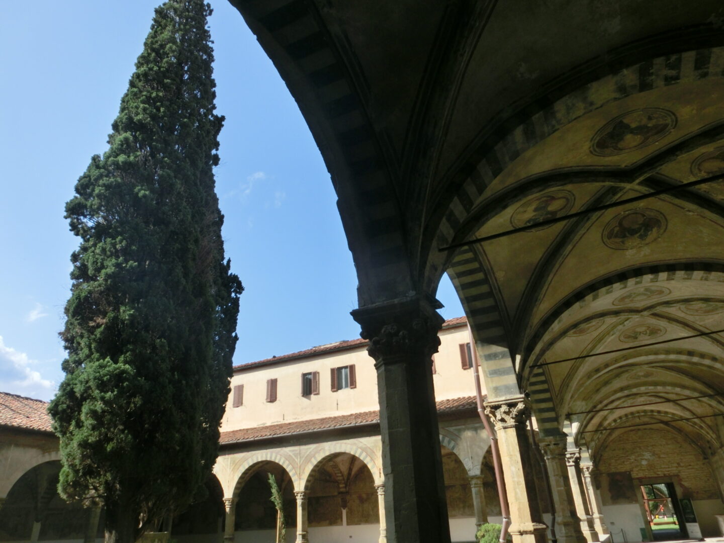 元々は教会左横にある緑の回廊にあった、パオロ・ウッチェッロのフレスコ画が近年修復され、奥のRefettorio(食堂)に展示されているのもお見逃しなく。その他、スペイン人の大礼拝堂も迫力のある大型のフレスコ画が見応えあります。