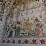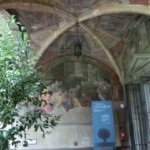 チケットは展覧会だけでなく、サンタ・マリア・ノヴェッラ教会の内部全てが見学できます。これはお墓が並んでいることから名づけられた「死者の回廊」。1300年前後のフレスコ画に覆われた空間は、時が止まってしまったかのよう。