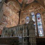 教会内は、言わずと知れた名作が数多く。教会中ほどには、ジョットの十字架像、マザッチョの「三位一体」というルネサンス初期の革命的な作品から、祭壇後ろにはギルランダイオ、その右横のストロッツィ礼拝堂にはフィリッポ・リッピのフレスコ画、祭壇左にはブルネッレスキの十字画像など、盛りだくさん。その他の写真は、下のギャラリーでご覧くださいね。