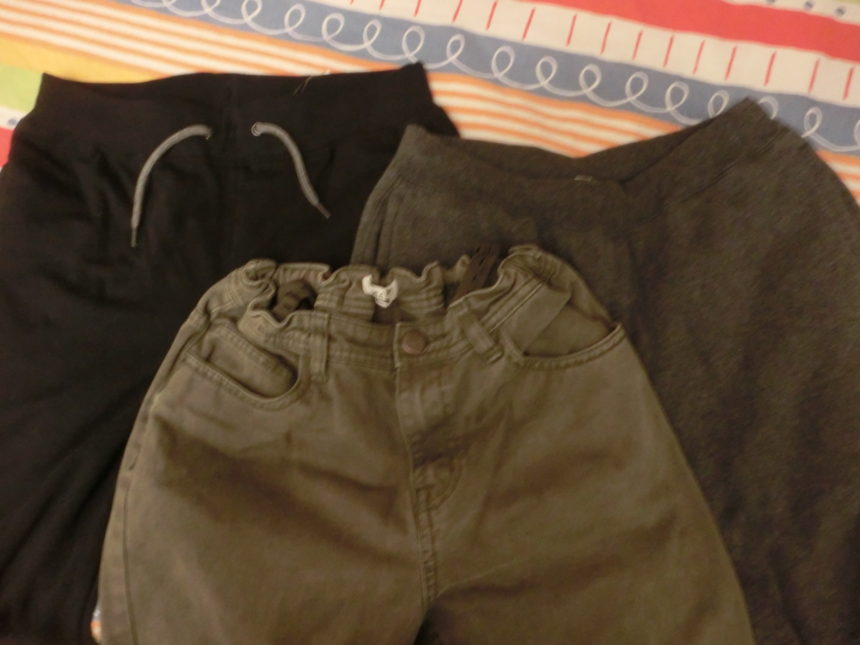 短パンならごまかして10才用のとかはけますが、長いズボンだとウェストに合わせると丈が短い。丈に合わせて年相応のを買うと、ウェストがぶかぶか・・・極力細身のを探しますが、なかなか難しいのです。左上のような紐付きジャージ絞りすぎてキュッキュになるし、大丈夫かな?と買った紐なしジャージはズレる、ズレる・・・一番困るのはジーンズなどで、内側のゴムアジャスターで絞ると、生地が固いのに絞りすぎてヒダができてしまうため、「痛い、かゆい」そうで。なんとか慣れてもらってはかせてますが、サイズアウトになってまた合うのを探すのが苦痛(苦笑)。もうすぐ第二次性徴でぐぐぐっと大きくなるとは思うけど、更に背が伸びて太らないままだと、ますます問題が深刻化するかもしれません💦