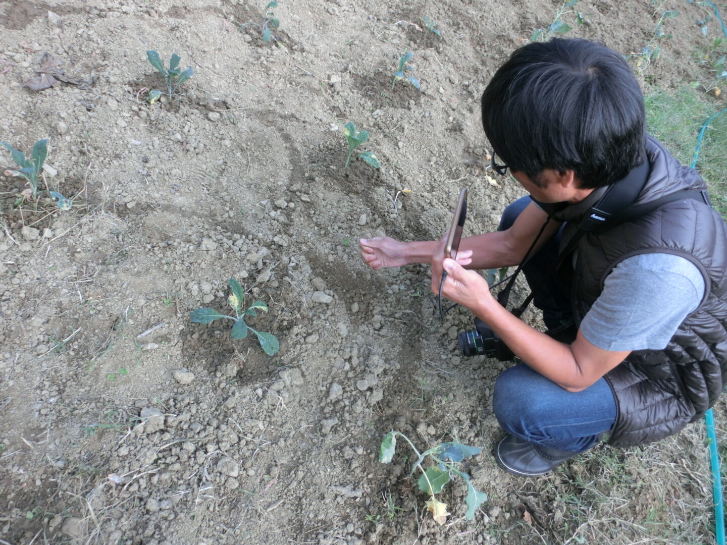 農地としてはあまり適していない標高650mの傾斜した土地ですが、池から水をひき、ほぼ全てを手作業で行っています。元々は測量士のファビオですが、2009年頃から土地を借りて農業を始め、2015年に今の場所を借り、県の移民政策を活用して農業組合としてスタート。現在、県の政策活動は終了しましたが、受け入れた移民の中で優秀はナイジェリアの若者4人と中国人1人はそのまま残り、他イタリア人の労働者数名で運営しています。