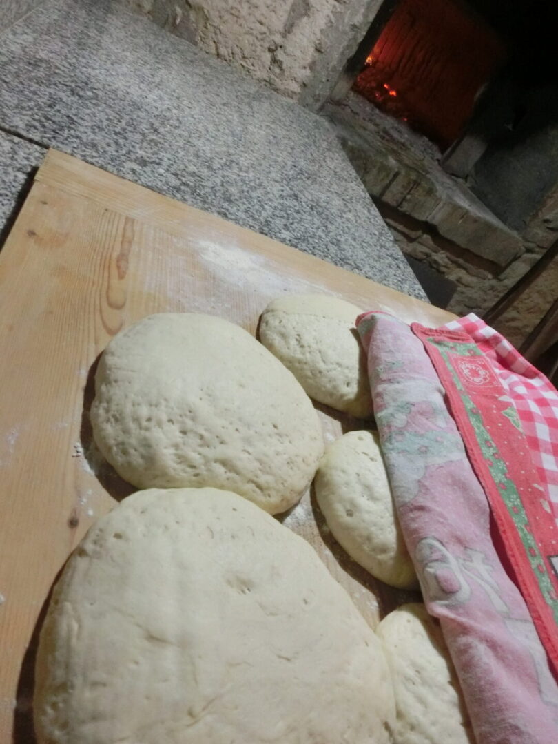 かつては精製度の低い2番(イタリアでは精製段階で番号が付いており、一番精製されている粉から00、0、1、2、そして全粒粉と別れています)だけでしたが、リクエストにより現在は0番も。これをそのまま使ったり、ブレンドしながらパン、ピッツァ、パスタを作っています(前者2つは週末の食事会に使用、パスタは食事会以外でも乾燥させて袋に入れて販売しています)。
