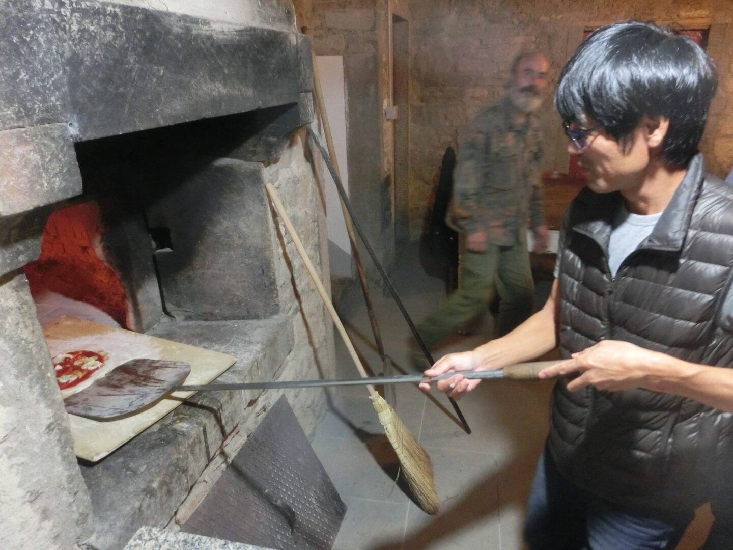 粉はもちろん、トマトピューレ、オリーブオイル、トッピングの野菜も自社製。先に火をおこしておいた、石窯で約ピッツァは最高!その他、固くなったパンとトマトで作るトスカーナ郷土料理、パッパ・アル・ポモドーロと、パスタ入りひよこ豆のミネストローネを作りました。