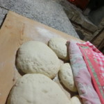 見学が一通り終わると、料理教室へ。メニューはリクエストに対応できますが、卯(うさぎ)農園さんはピッツァと旬の野菜を使ったお料理という事で、まずはピッツァの生地を仕込みます。見学前に捏ねて1次発酵の終わった生地を、1枚分に丸めて2次発酵へ。料理教室のメインは奥さんのアンナさんです。