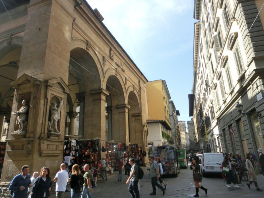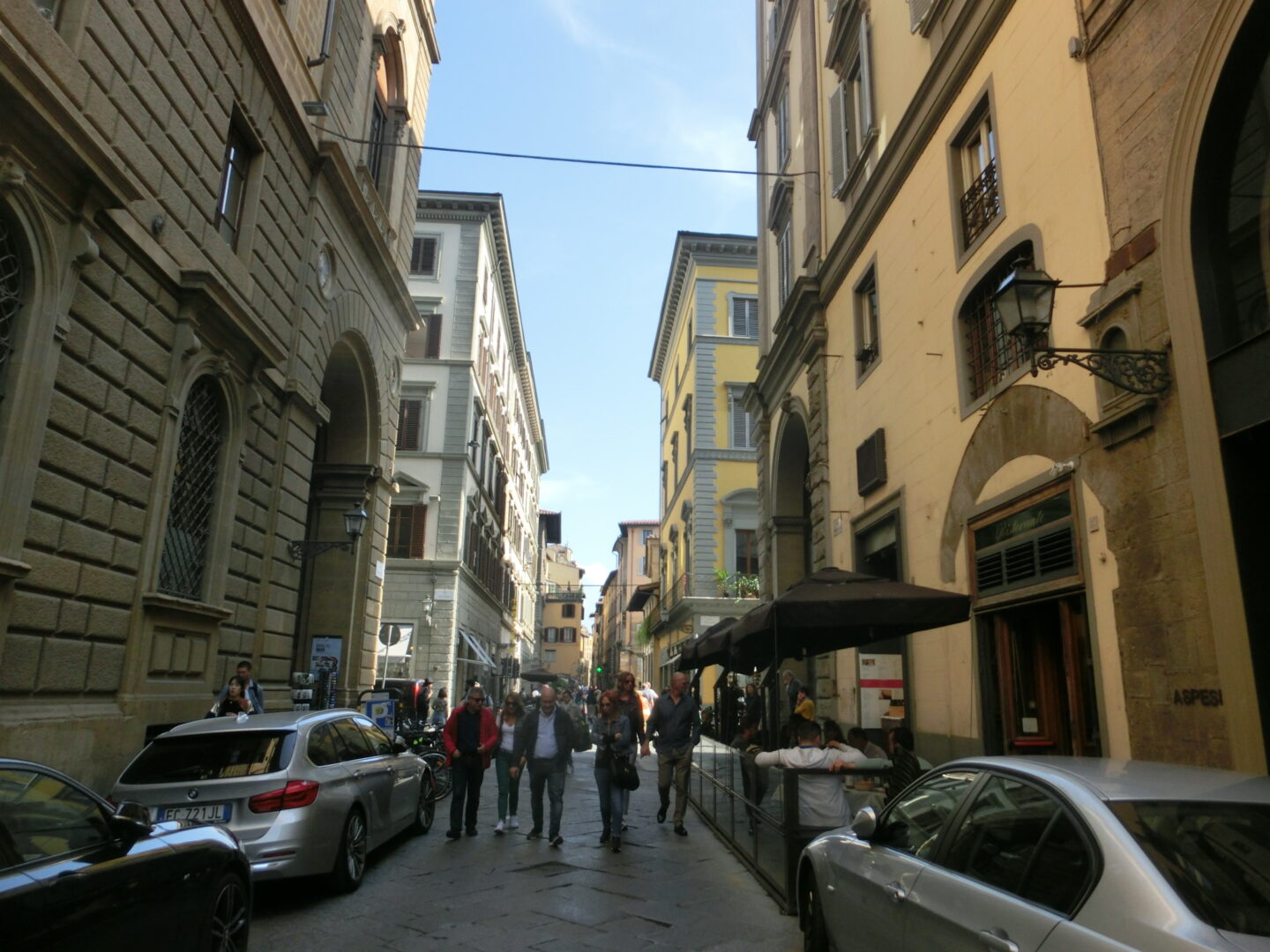 ご覧になって分かるように、有名な金のイノシシもいる新市場のロッジアから、ハイブランドの集まるトルナブォーニ通りまでをつなぐ通り。旧市街の中でも観光客が多いエリアで、両サイドはほとんどがお店かレストランで埋められていますが、個性派のお店ぞろいの楽しい通りです。