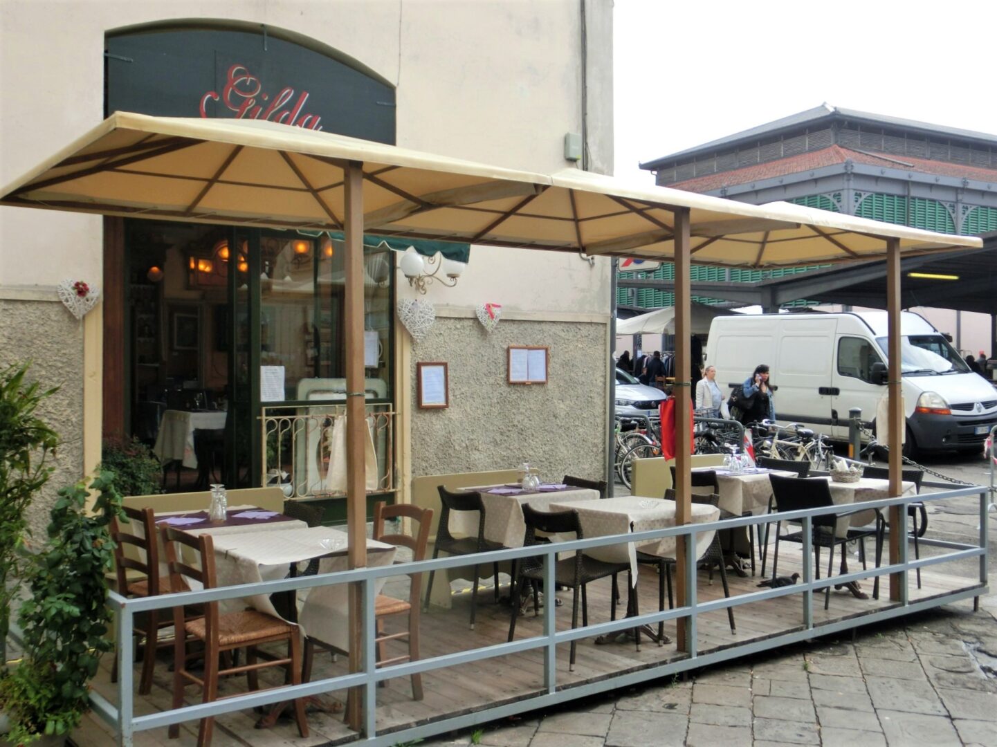 地元民や観光客でにぎわう、サンタンブロージョ市場。その賑やかな広場の一角に、通り過ぎてしまいそうなくらい慎ましく、小さな宝石のようなビストロがあります。オープンは2000年、オーナーの純フィレンツェ人・ジルダさんと息子のウィリアムさん・・・お二人ともとっても粋なマダムと紳士、服装などあまりイタリアっぽくないのですが、おしゃべりなのはやっぱりイタリア人(笑)。