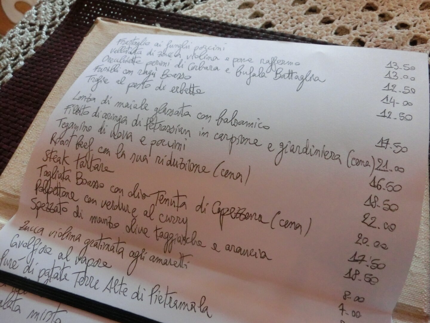 そして気になるお値段ですが、プリモは12ユーロ~、メインは20ユーロ~と、私が普段使いするにはハッキリ言って予算外。実際私が行った時は常連さんの「AVVOCATO(弁護士さん)」や、州庁などどこかの機関にお勤めの方々のビジネスランチの方など、超庶民が来るお店ではなさそうです。ただし、ツンツンしている感じは全くなく、逆におしゃべりしてくるほどの気さくな感じ。そしてこの独特の雰囲気の中で過ごすゆったりとした時間は、特別な食事の時にまた再訪したいなぁ、と思わせてくれました。旅行者の方なら、フィレンツェの旅の思い出作りにはぴったりですよ。