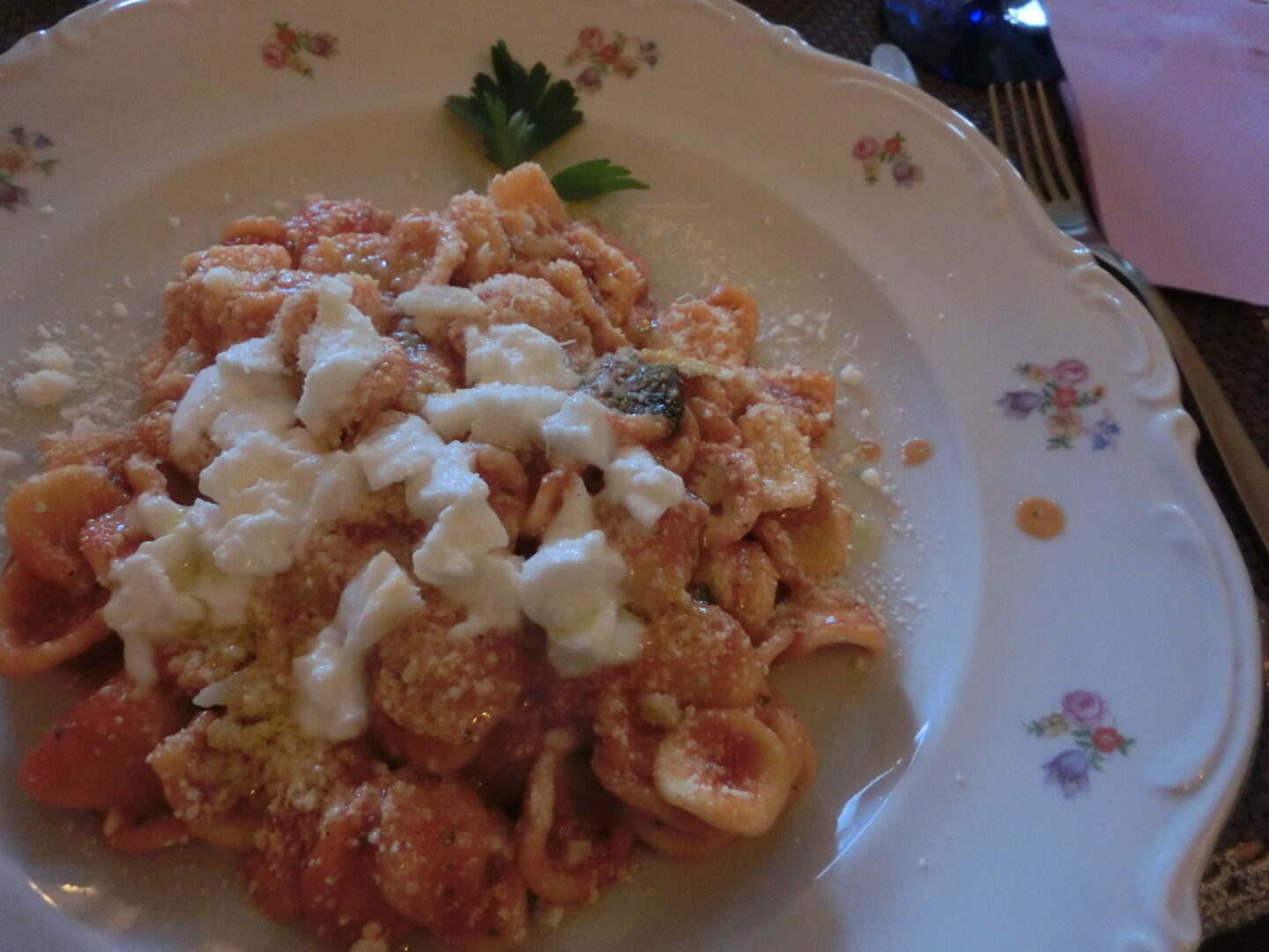 オーダーしたのは、オレッキエッテのトマトソース、水牛モッツァレッラ添え。これ、かなりボリュームがありますが、お味も上品で美味しいので何とか食べられましたが、複数人で行くならシェアして他のお料理も食べたい所です。
