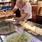 入ってすぐ前のカウンターでオーダーする、「スキアッチャータ」!スキアッチャータは日本ではきっと「フォカッチャ」と言われている薄い塩の効いたパン。生地を押して=Schiacciata して作るからこんな名前がついています。サイトにはクラシック、スペシャル、ベジタリアンと3カテゴリーに分かれたメニューがありますが、