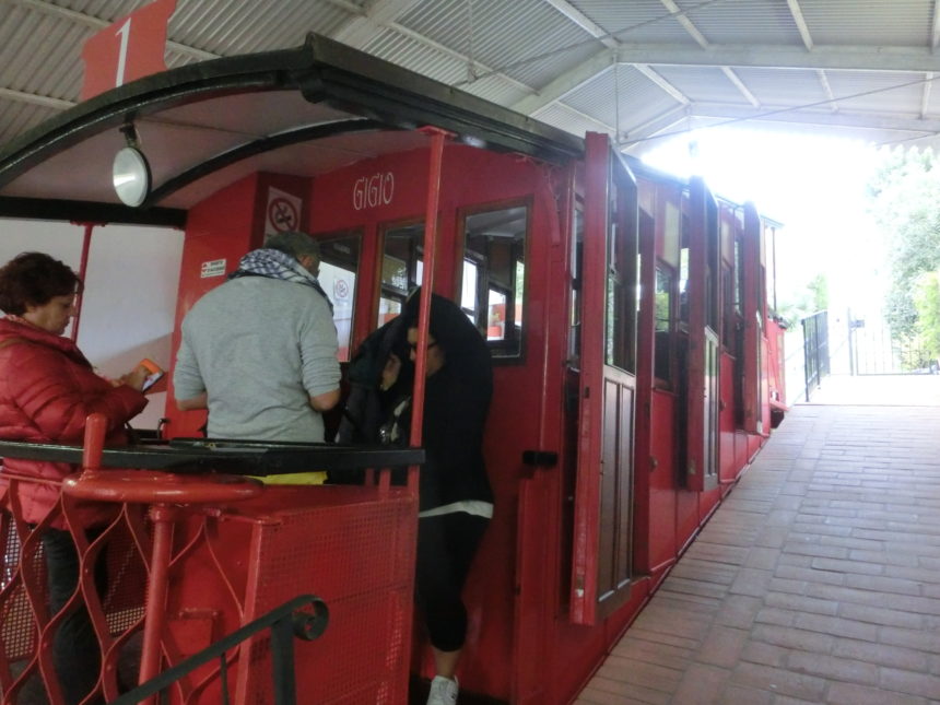 イタリアでは、丘の上に旧市街、丘の下に新市街+駅、になっている町があちらこちらにあります。新市街から旧市街の行く方法は、徒歩、車、バスが多いですが、このモンテカティーニは、ケーブルカー!しかも創業が1898年と100年以上の歴史を誇っているのです!2019年の11月〜2020年の春まで長期メンテナンスに入るということで、10月末に乗ってきました。
