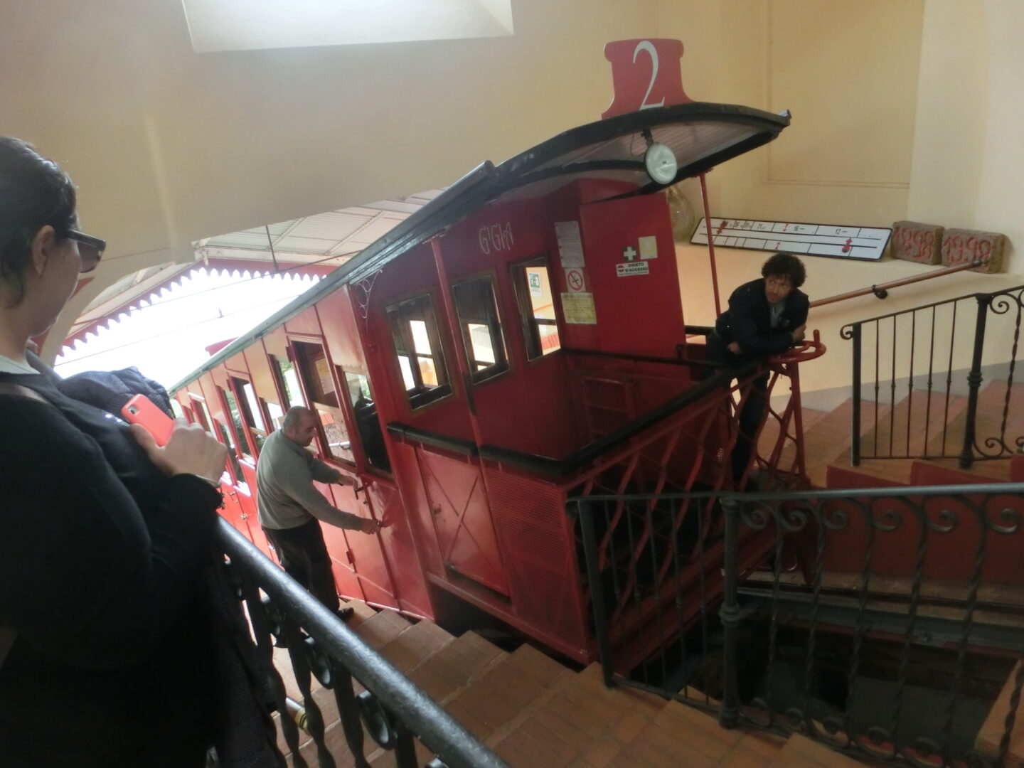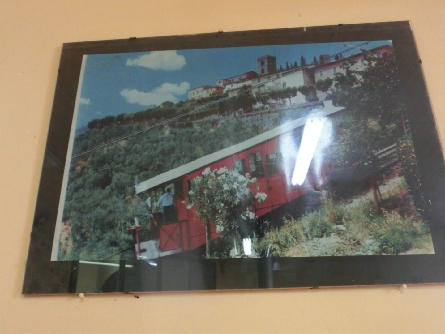 全長1077m、乗車時間は8分30秒なので、同じケーブルカーでもチェルタルドのよりかなり長く感じます。そして民家からオリーブ畑、そして橋をくぐったり、脇に勾配を書いたプレートがありますが、上に行くごとにだんだん急になったり・・・道中も楽しいです。ちなみに勾配の平均は20度、一番急な箇所は38.5度だそうです。