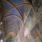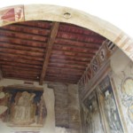 薄暗い内部に浮かび上がるフレスコ画は、なんと1300年代のもの。しかも、一度も修復がされいていないので、すべてがオリジナルのままで残ってるんです(1999年に映画撮影使用にしたお礼として、埃払いが行われただけ)!見て分かるように、窓がほとんどなく光による退化が最少であるからとされています。描かれているのは、右壁面は旧約聖書、左の壁面には新約聖書。