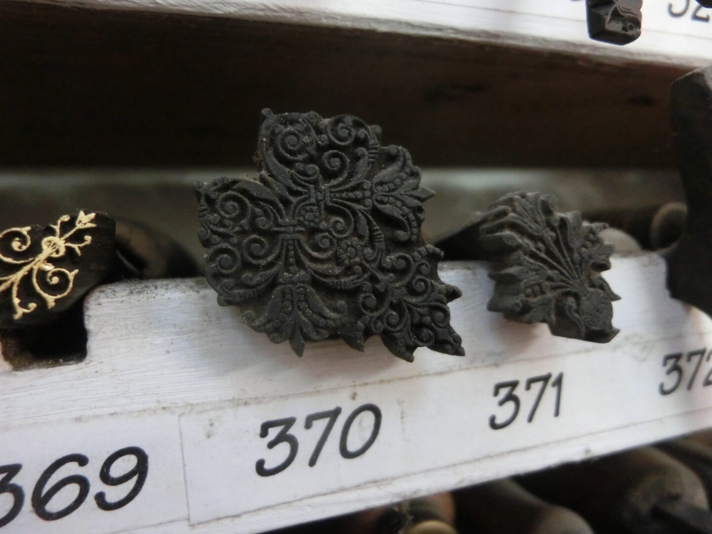 文字もフォント違いがたくさんあり、それをサイズの合う型に一文字づつはめこんでいきます。それを程よく熱したら