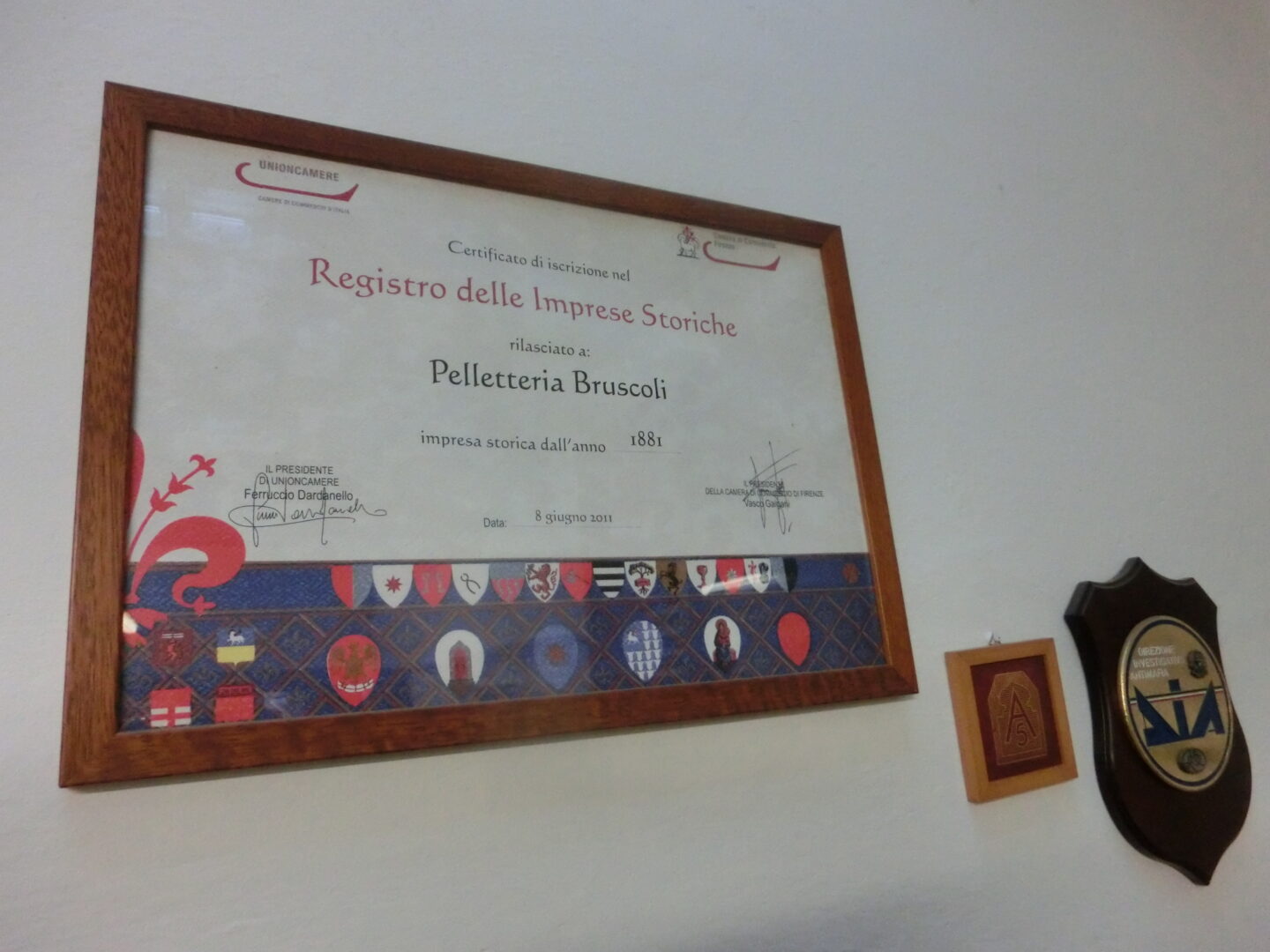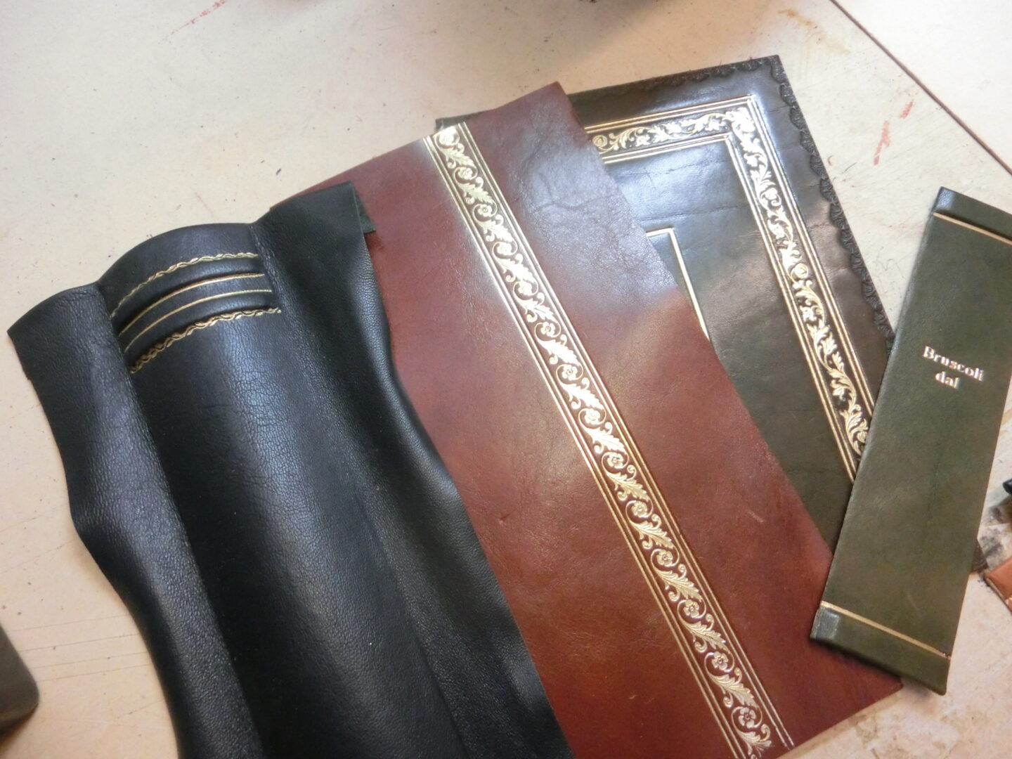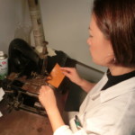TVドラマでも取り上げられるほど、職人の町として名高いフィレンツェ。日本はもちろん、イタリア国内、さらにフィレンツェに住んでいても知られていないような、隠れた伝統工芸というのも数多く存在します。その1つが、革製品に施される22カラットの金装飾。1800年代からの繊細なコテを使用し、今も1つ1つ手作業で仕上げてゆくその作業を行えるのは、フィレンツェ、もしかしたらイタリアでも唯一?その工房はオンニサンティ地区にひっそりと・・・その名はブルスコリ。今とは違うサンタクローチェ地区に、エディージオ・ブルスコリが活版印刷と製本・装丁の会社として1881年に創業。その美しい装丁はコンクールでも受賞し、息子のフランチェスコは製本・装丁を専門に事業を拡大していきます。4代目のパオロは、かのラウレンツィアーナ図書館の装丁本の修復、1966年の洪水で被害を受けた国立図書館の装丁本の修復などの事業のほか、家具や小物の一部・全体となる革製品を作り続けてきました。が・・・
