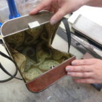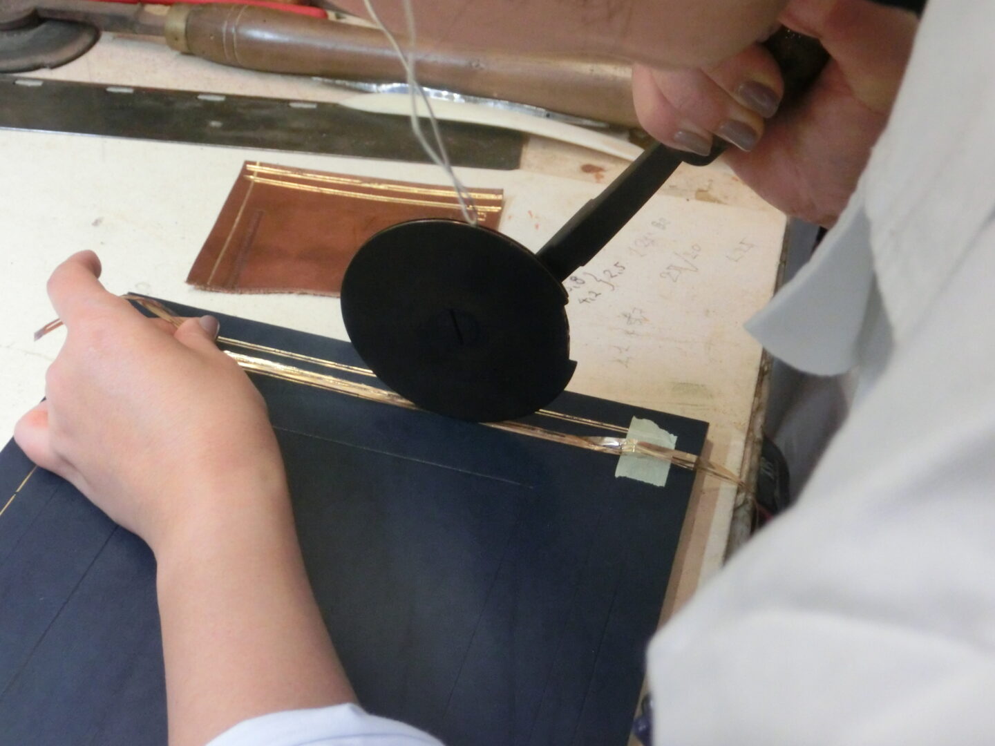 敷いていた金シートにぎゅっと。簡単そうに見えますが、型の温度、かける圧力、時間などが完璧でないと、ちゃんとくっつかなかったり、金が焦げてしまったり。訓練を経て、やっと習得できる技術なのです。