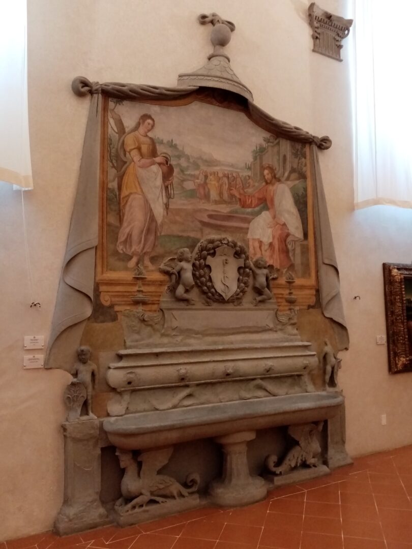 手洗い場を挟んで食堂の反対側に行くと、大きな暖炉のある台所だった部屋があります。こちらも1500年代の作品なのですが、気になったのが半円形の3つの作品。これらは修道女でもあり、フィレンツェで最初の女流画家とされるピラウティッラ修道女の作品。別の教会にあったものが、2009年からこのサンサルヴィ美術館に展示されていますが、彼女の描いた現存する作品は7枚の板絵と1枚のキャンバス画のみという貴重なものですので、こちらもぜひお見逃しなく。