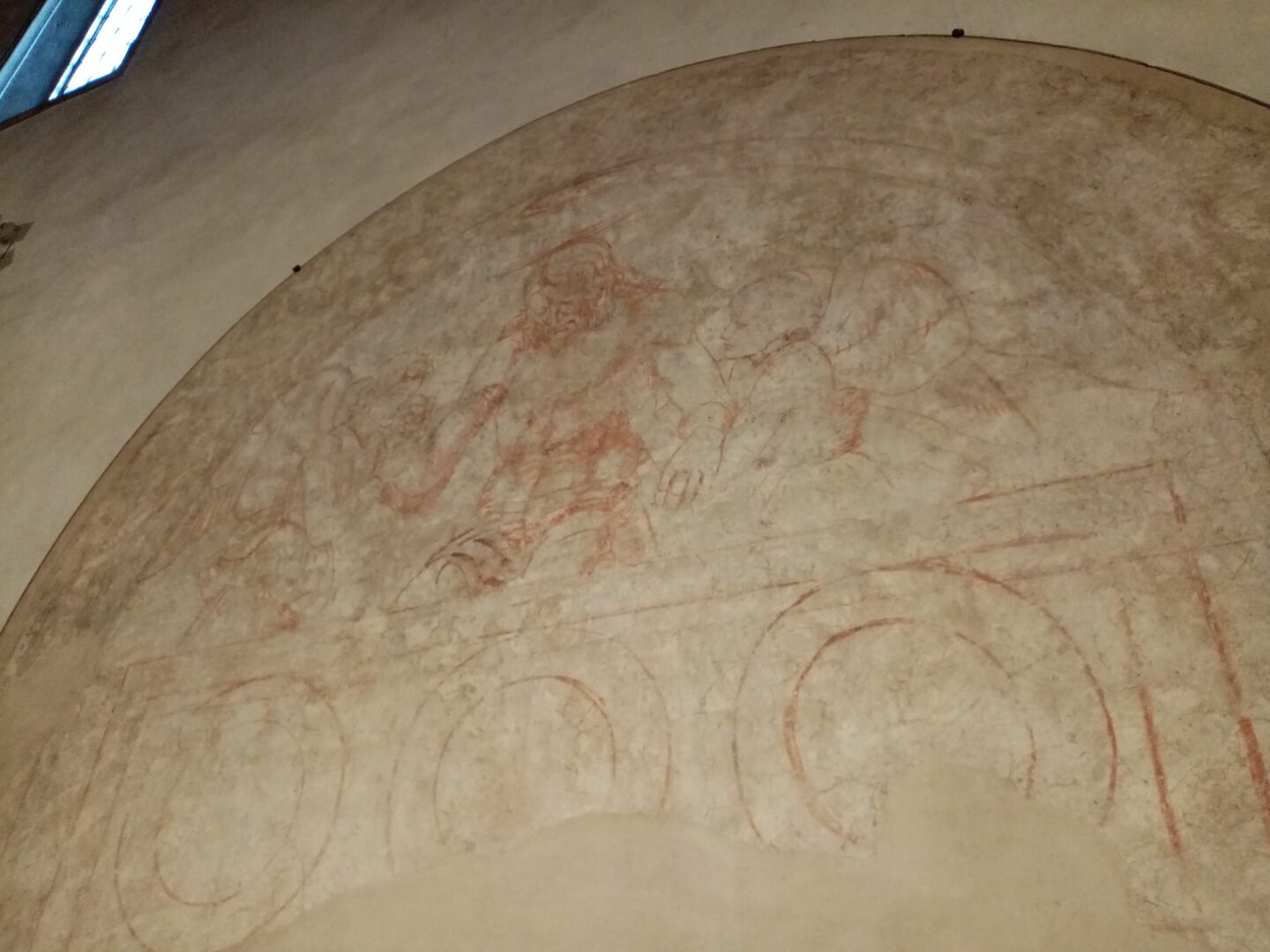 厳格なまでの遠近法、そして左右の像に見られる古典主義的な装飾。そして時にヴァザーリなどから指摘されたように、濃い色使いに、堅めのしぐさや表情。まだルネサンスの最高潮を迎える過渡期の作品として、またアンドレア・デル・カスターニョの中での代表作として評価を受けています。上には左から、「キリストの復活」、「キリストの十字架刑」、「キリストの降架」の3つのシーンも。実は「最後の晩餐」が見つかった時にしっくいで上塗りされたのですが、湿度の問題で壁をやり直す時に発見されたのだそう。そのおかげで損傷が激しいのですが、その発見時には下絵であるシノーピエも見つかり、現在は逆側の壁に移設されているので、見比べてみるのも面白いですね。