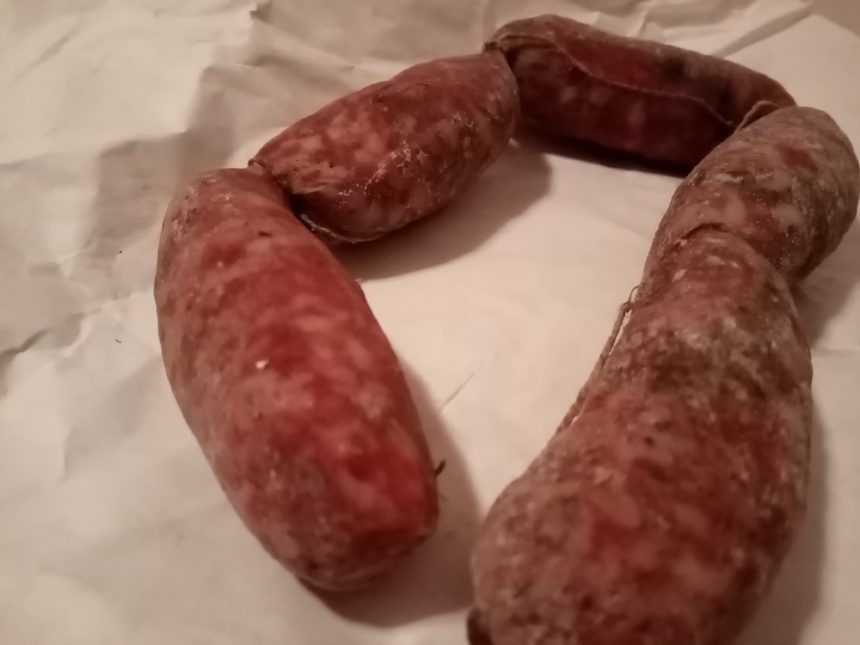 で、このサルシッチャ・・・生で食べられるんです!もちろん、豚肉で作ったサルシッチャです。豚肉を生で・・・て、いくらスパイスがたくさん入っているとしても、市販のものは怖くて生では食べません。これはもちろん生産者さんのことを知っていて、生産者さんから「生で食べられるよ~」って言ってもらったから。トスカーナでは結構サルシッチャ生で食べますが、それは皆さん、信頼できる生産者さん・肉屋さんがいるからこそ。基本的に生肉が好きな私、もー、ヤバ旨。そして私の血をひいてるのか?息子2人も生サルシッチャを気に入ってしまい、アホほど食べてしまいました💦これはオルチャへ行くごとに、ルチャーノのところ買いに行かないとなぁ~。
